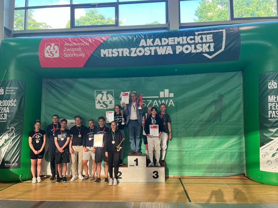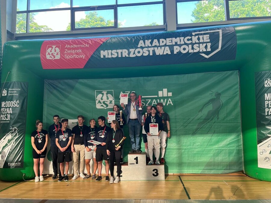 W miniony weekend w Warszawie rozegrano Akademickie Mistrzostwa Polski w Szermierce. W tym roku naszą uczelnię reprezentowało 12 studentów, którzy ostatecznie wywalczyli 5 medali oraz zwyciężyli w klasyfikacji generalnej całego turnieju! Serdecznie gratulujemy wszystkim zawodnikom oraz opiekunowi sekcji dr. Michałowi Morysowi.