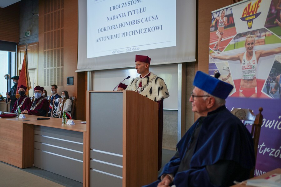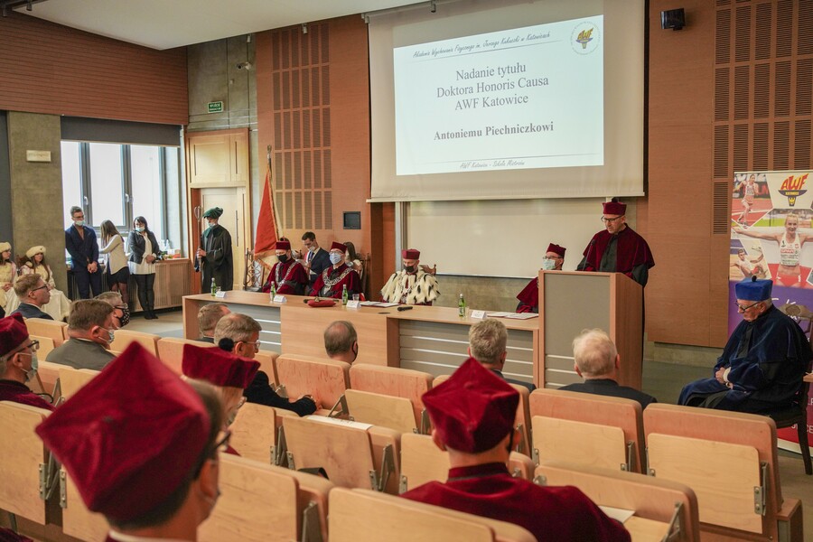 Dziś w murach naszej Uczelni tytuł Doktora Honoris Causa odebrał jeden z najwybitniejszych polskich trenerów piłki nożnej, wieloletni pracownik i wykładowca AWF Katowice, selekcjoner piłkarskiej Reprezentacji Polski – trener Antoni Piechniczek.