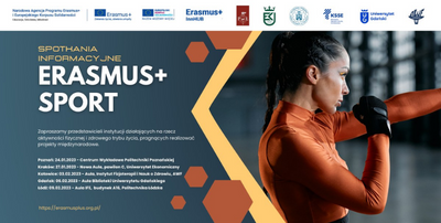 Wydarzenie odbędzie się 3 lutego 2023 r., godz. 9:00-12:30, w Katowicach – Aula, Instytut Fizjoterapii i Nauk o Zdrowiu, AWF Katowice. Udział w spotkaniu jest nieodpłatny, ale wymaga wcześniejszego zarejestrowania się poprzez formularzuwaga, link otwiera się w nowej karcie. Celem jest przedstawienie potencjalnym wnioskodawcom informacji na temat działań w ramach Mobilności edukacyjnych (Akcja 1) oraz Współpracy organizacji i instytucji (Akcja 2) możliwych do zrealizowania w sektorze Erasmus+ S