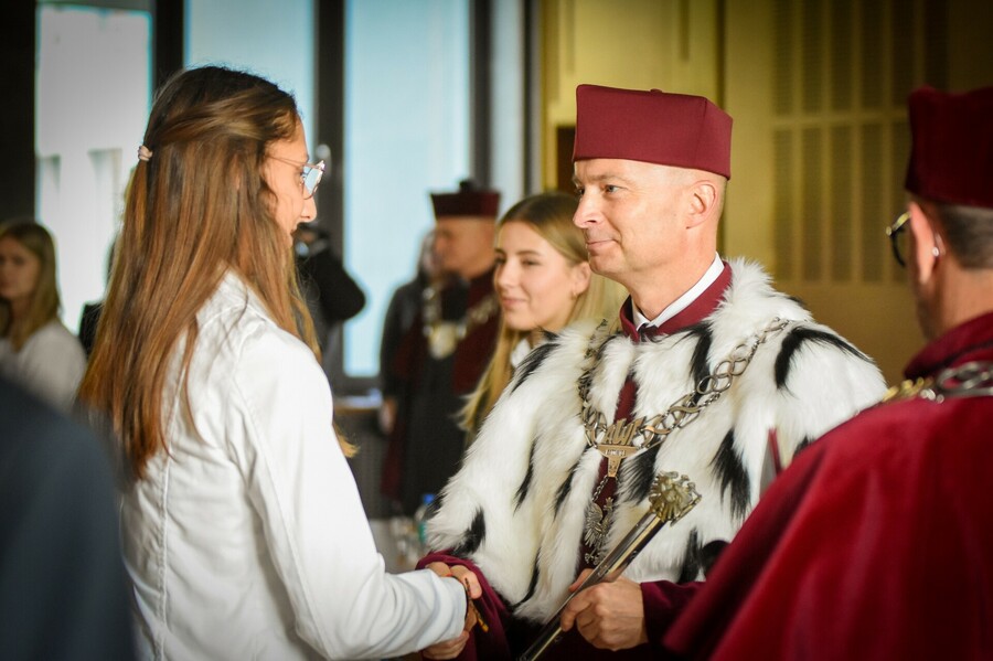 Głównym punktem programu Uroczystej Inauguracji jest akt Immatrykulacji, czyli przyjęcia w poczet studentów i doktorantów uczelni. Tę część uroczystości prowadził Prorektor ds. kształcenia i studentów prof. AWF dr hab Rajmund Tomik.