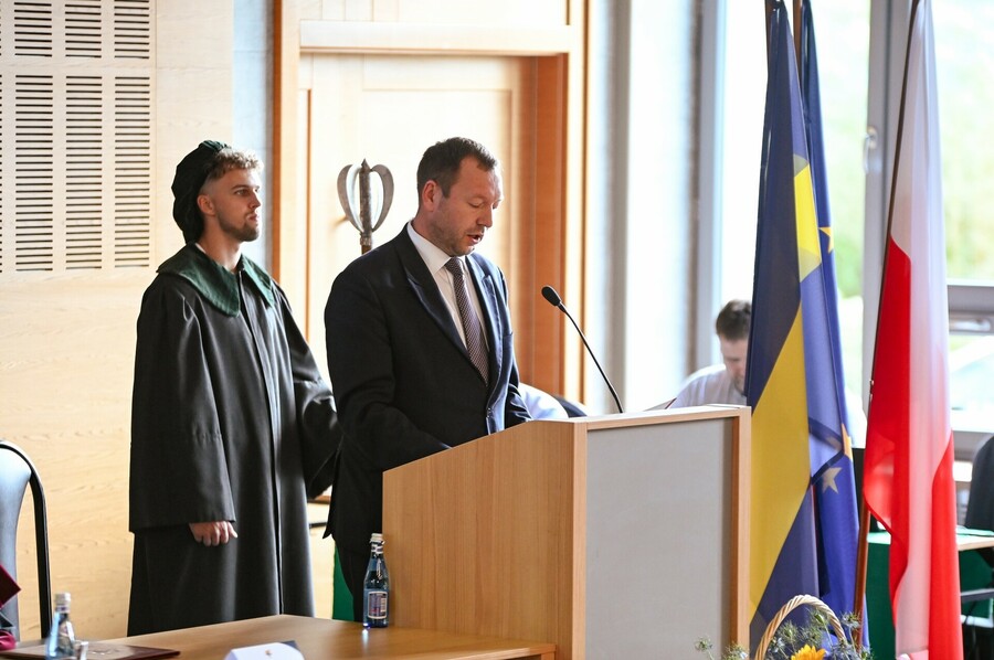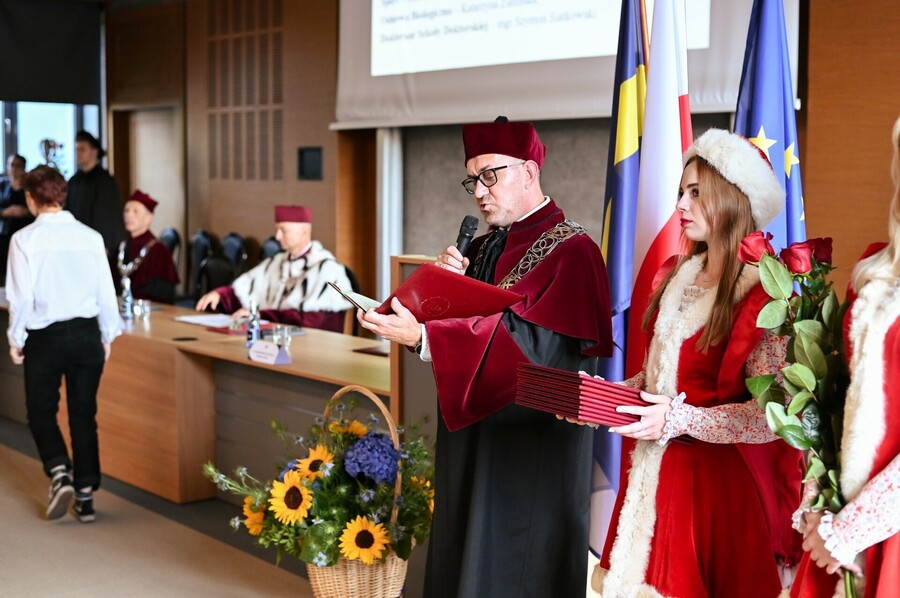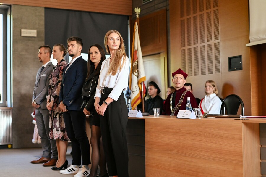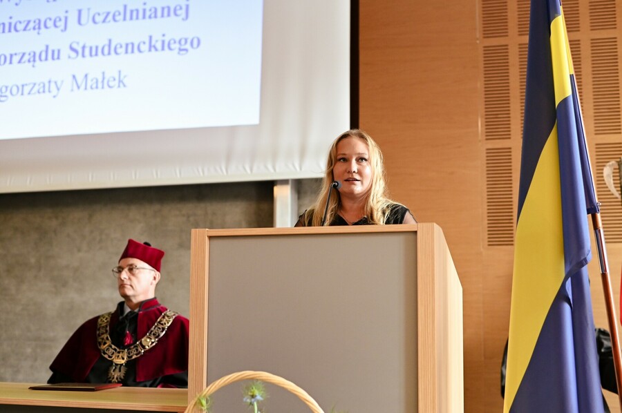 - Drodzy studenci. Rozpoczynający się właśnie rok akademicki to czas nowych możliwości, odkrywania, wzrostu i transformacji. Dla tych, którzy dziś wstępują w studenckie progi, to początek w świecie wiedzy, w którym marzenia stają się rzeczywistością. […] Jestem przekonana, że każdy z Was ma ogromny potencjał, którego rozwijanie przyniesie korzyść nie tylko jemu samemu, ale także społeczeństwu. […] Bądźcie otwarci na nowe pomysły, wspierajcie się nawzajem i angażujcie się w działania, które przysłużą się naszej uczelni. Życzę Wam sukcesów. Niech to będzie czas odkrywania, rozwijania pasji i osiągania wyznaczonych celów.