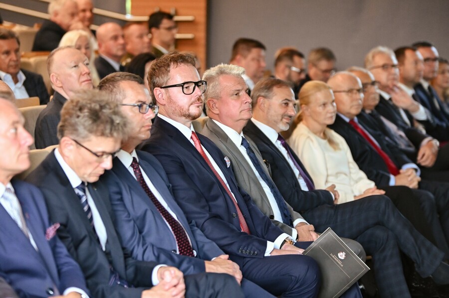 Następnie głos zabrał prof. dr hab. inż. Marek Gzik — przewodniczący Sejmiku Województwa Śląskiego, który podkreślił, jak ważna jest współpraca instytucji w procesie głębokiej transformacji gospodarczej, którą przechodzi nasz region, a także złożył życzenia z okazji nowego roku akademickiego: