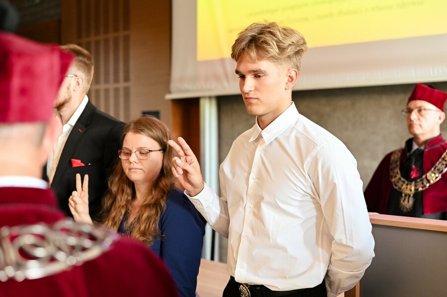Po przemówieniach Prof. Rajmund Tomik – Prorektor ds. dydaktyki i studentów przeprowadził immatrykulację studentów, którzy wyrecytowali tekst ślubowania i tym samym zostali przyjęci w poczet studentów.
