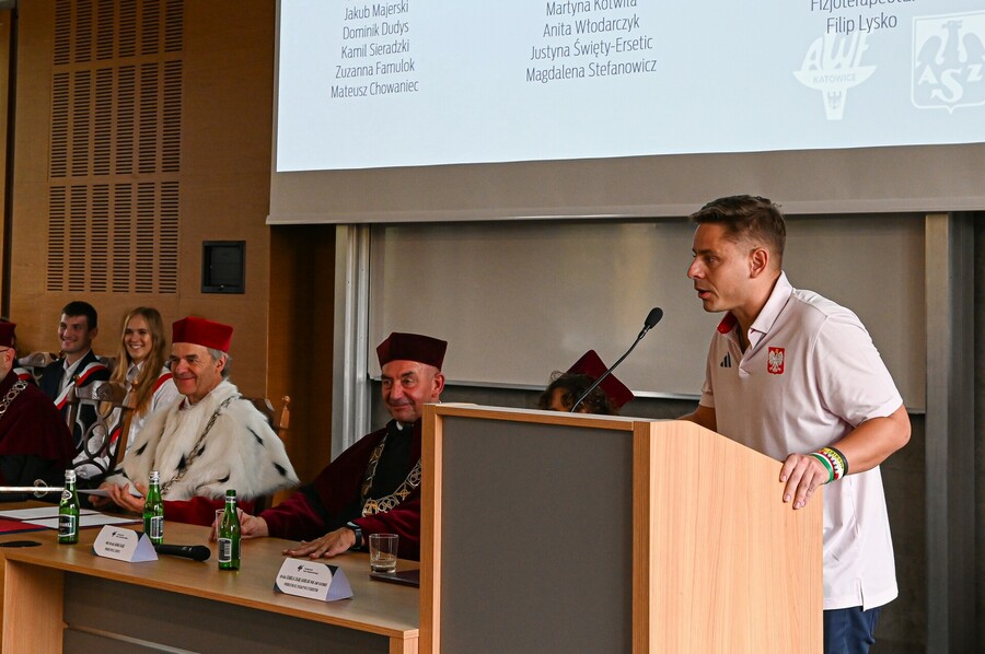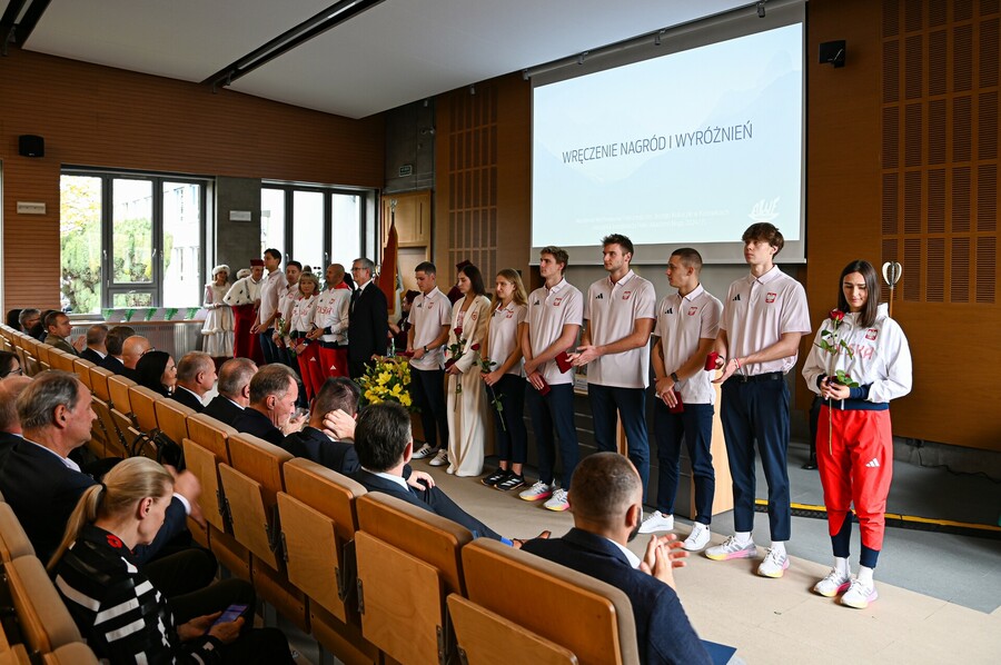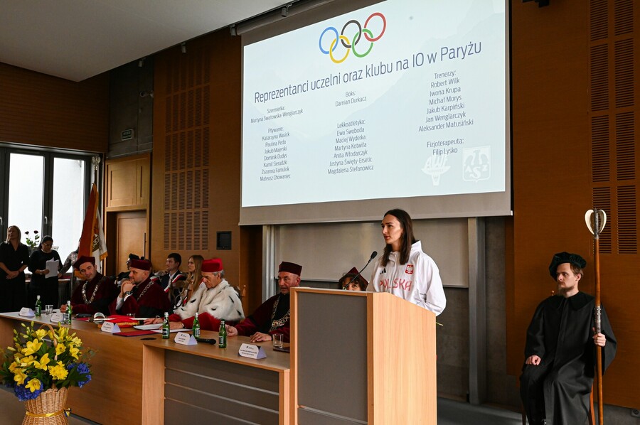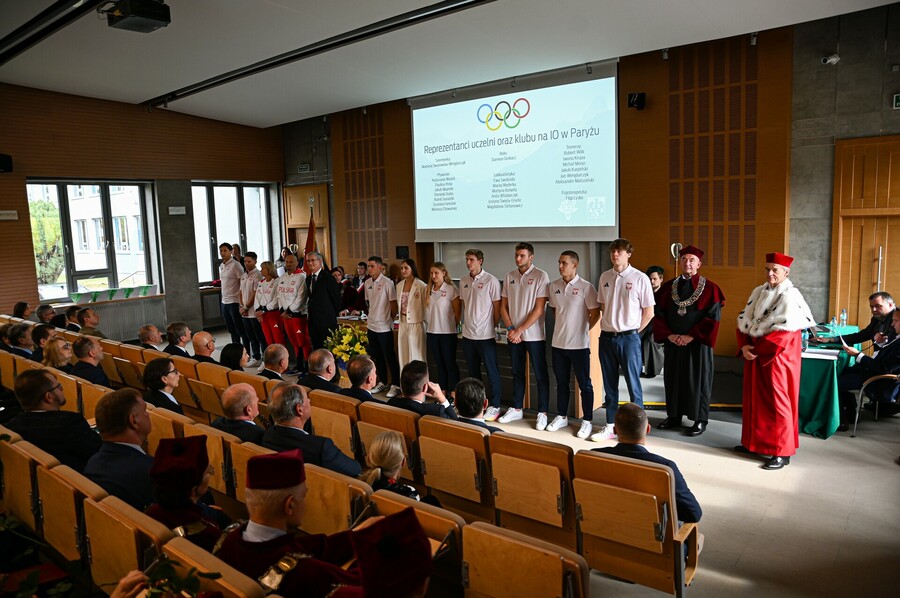 Miniony rok akademicki był dla nas wyjątkowy. Był to rok olimpijski i nasi sportowcy reprezentowali Polskę podczas Igrzysk Olimpijskich w Paryżu. Władze uczelni zdecydowały o wyróżnieniu olimpijczyków z Paryża, którzy są naszymi pracownikami, studentami i zawodnikami Klubu Sportowego AZS AWF Katowice. Pamiątkowe medale za godne reprezentowanie Uczelni i Klubu wręczył Rektor prof. dr hab. n. med. Andrzej Małecki oraz Prorektor ds. sportu prof. dr hab. Adam Zając. W gronie uhonorowanych znaleźli się: