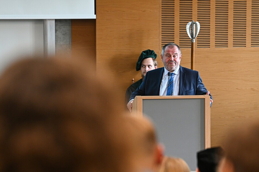 Pan Rektor oficjalnie otworzył inaugurację słowami: „QUOT FELIX FAUSTUM FORTUNATUM QUE SIT” - wszystko, co radosne i szczęśliwe niech się stanie.