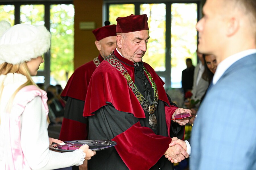 Tegoroczna inauguracja była również okazją do nagrodzenia wielu zasłużonych pracowników naszej uczelni. W minionym roku akademickim Odznaki "Za zasługi dla sportu" otrzymali: