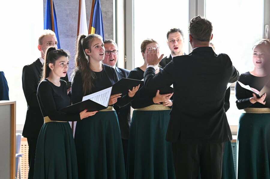 Goszczący w naszych progach Chór Uniwersytetu Ekonomicznego w Katowicach wykonał utwór „Gaude Mater Polonia”.