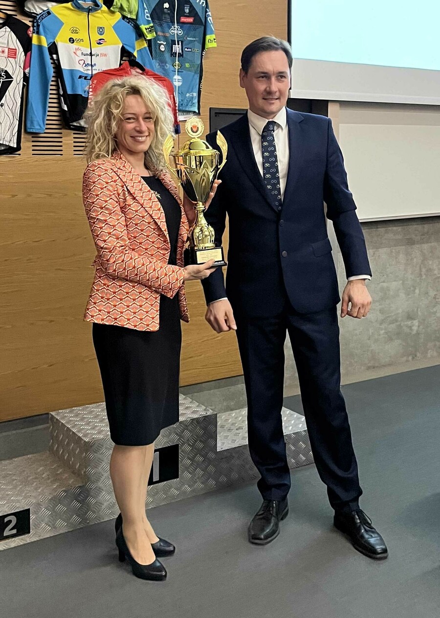 W gronie wyróżnionych jest również KS AZS AWF Katowice. Zawodniczka naszego klubu Dagmara Lityńska w kategorii elita kobiet, ścigając się na torach BMX Racing już po trzeci z rzędu sezon kończy z I klasą sportową. Prócz uzyskanych wyników swoją postawą zachęca ona również młodych kolarzy do tej niezwykle widowiskowej olimpijskiej konkurencji rowerowej. Pani Dagmara wyrazy uznania wraz z pucharem odebrała osobiście z rąk prezesa Polskiego Związku Kolarskiego Rafała Makowskiego.