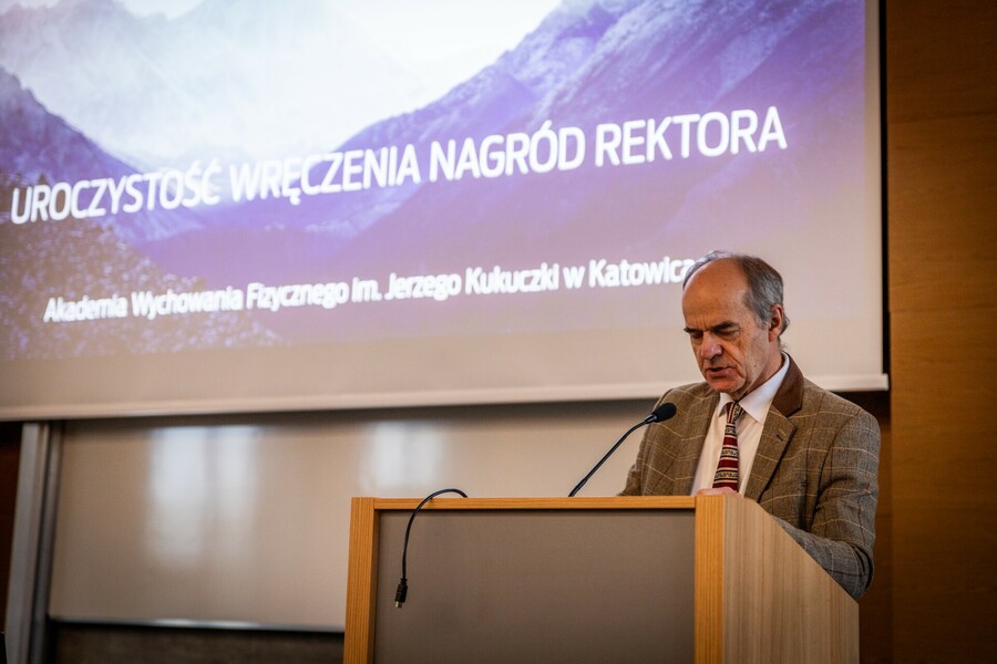 Dziś w auli im. Lechosława Deca odbyło się spotkanie, podczas którego Rektor AWF Katowice prof. dr hab. n. med. Andrzej Małecki przedstawił bieżącą sytuację Uczelni, omawiając najważniejsze wyzwania i sukcesy ostatnich miesięcy.