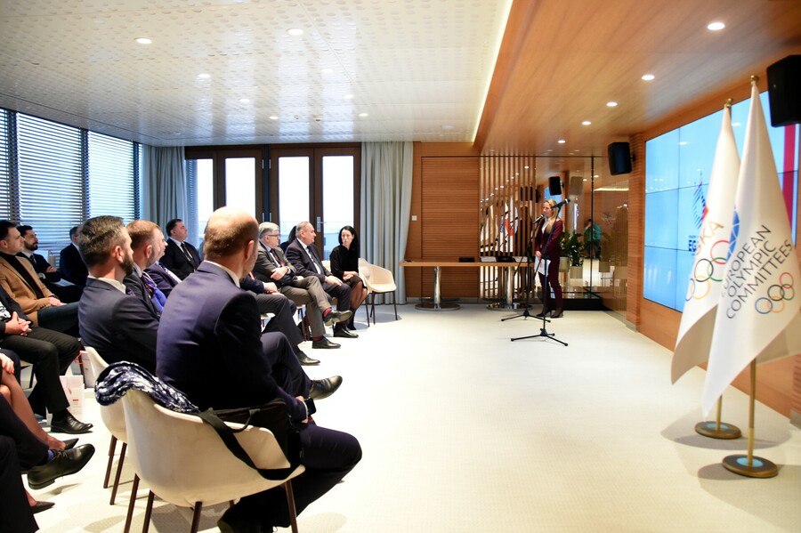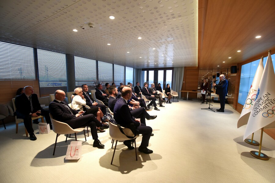 Z ramienia uczelni w Centrum Olimpijskim PKOl gościli: prof. dr hab. Grzegorz Juras – Rektor Akademii Wychowania Fizycznego w Katowicach, prof. dr hab. Andrzej Klimek – Rektor Akademii Wychowania Fizycznego w Krakowie, prof. dr hab. Andrzej Rokita – Rektor Akademii Wychowania Fizycznego we Wrocławiu oraz dr. Ireneusz Cichy – Prorektor ds. Organizacyjnych i Współpracy z Otoczeniem, prof. dr hab. inż. Mariusz Cygnar – Rektor Akademii Nauk Stosowanych w Nowym Sączu; Wojciech Nowak – pełnomocnik Rektora ds. Sportu i Komercjalizacji Obiektów Sportowych Akademii Nauk Stosowanych w Tarnowie, dr Witold Ziara – Koordynator ds. III Igrzysk Europejskich z ramienia Małopolskiej Uczelni Państwowej w Oświęcimiu; dr Bianka Godlewska-Dzioboń – Rektor Podhalańskiej Państwowej Szkoły Zawodowej.