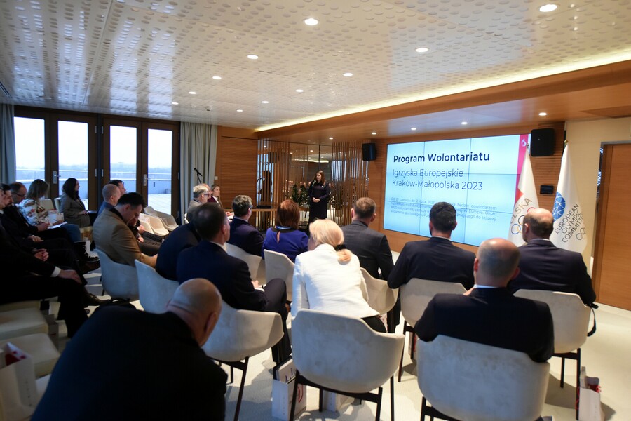 Obecni byli również: Mariusz Zagórski – Dyrektor Departament Igrzysk Europejskich 2023 w MSiT, Janusz Kozioł – Pełnomocnik Prezydenta Miasta w UM Kraków oraz wiceprezes spółki Igrzyska Europejskie 2023, Anna Budzanowska – Ambasador Igrzysk Europejskich 2023 oraz Berenika Baranowska - IE Dyrektor Pionu Wolontariuszy.