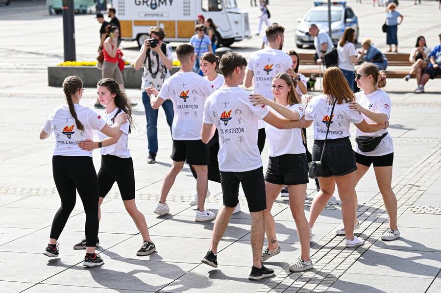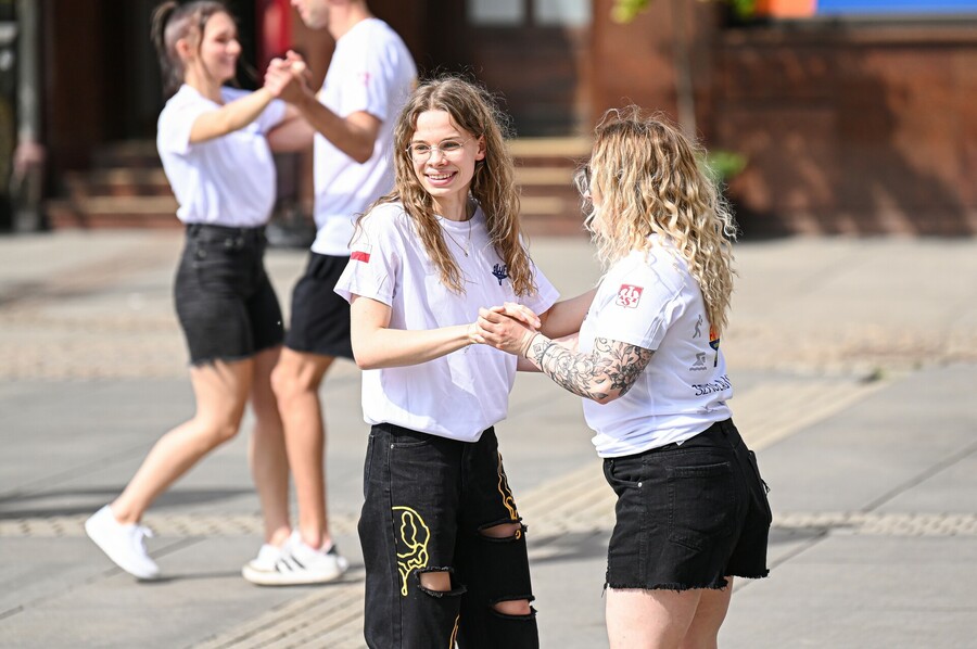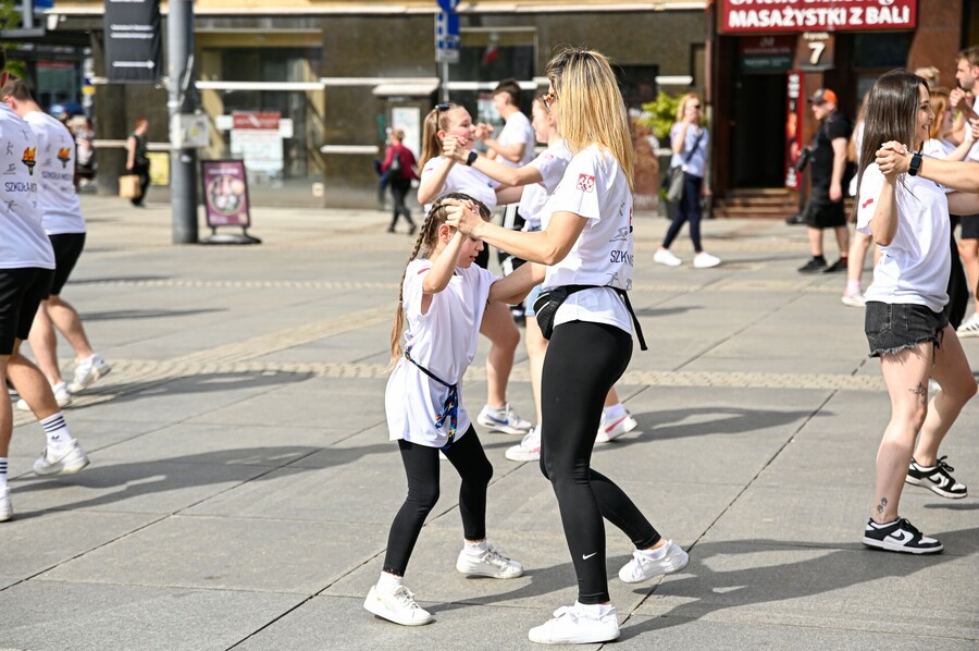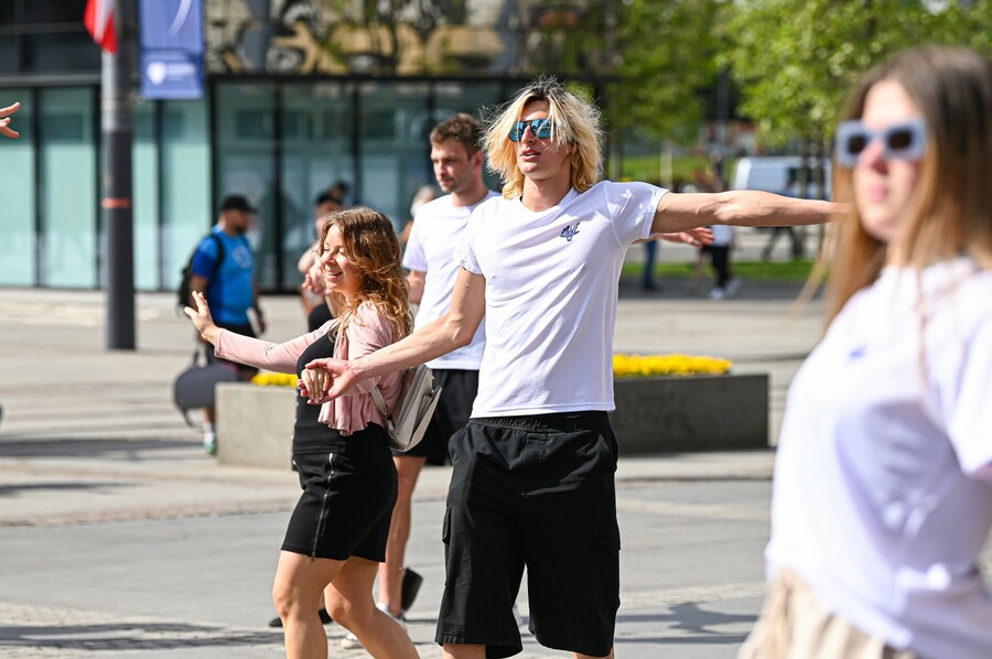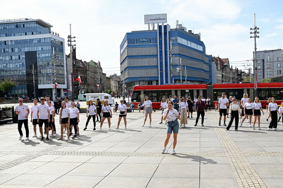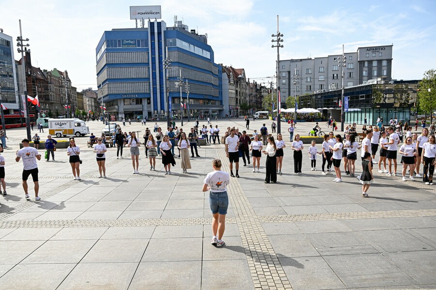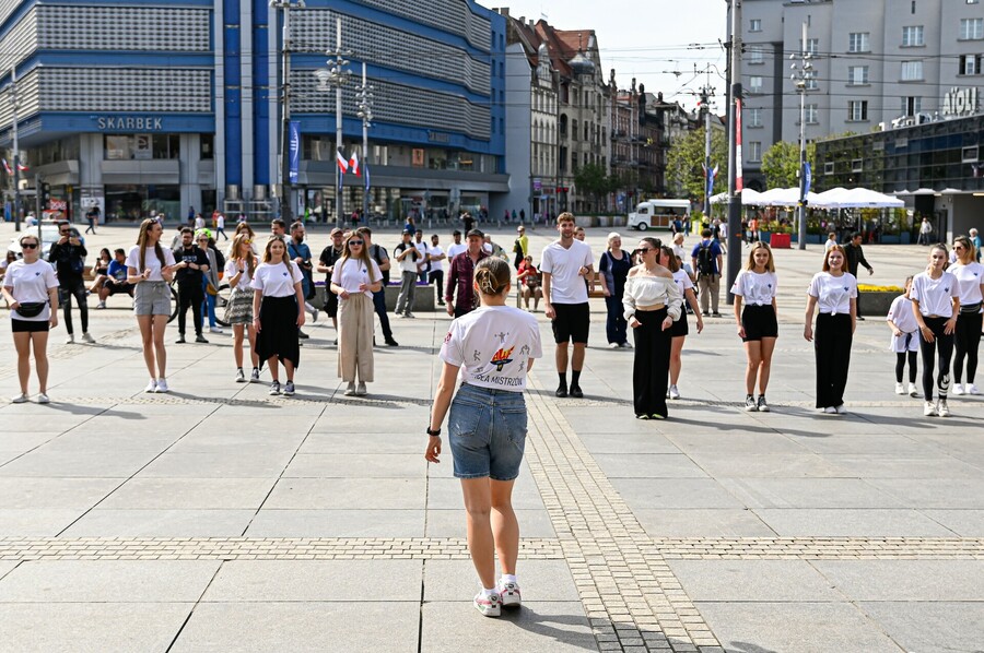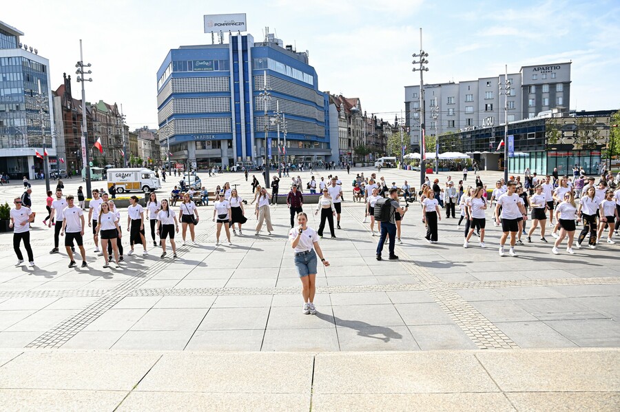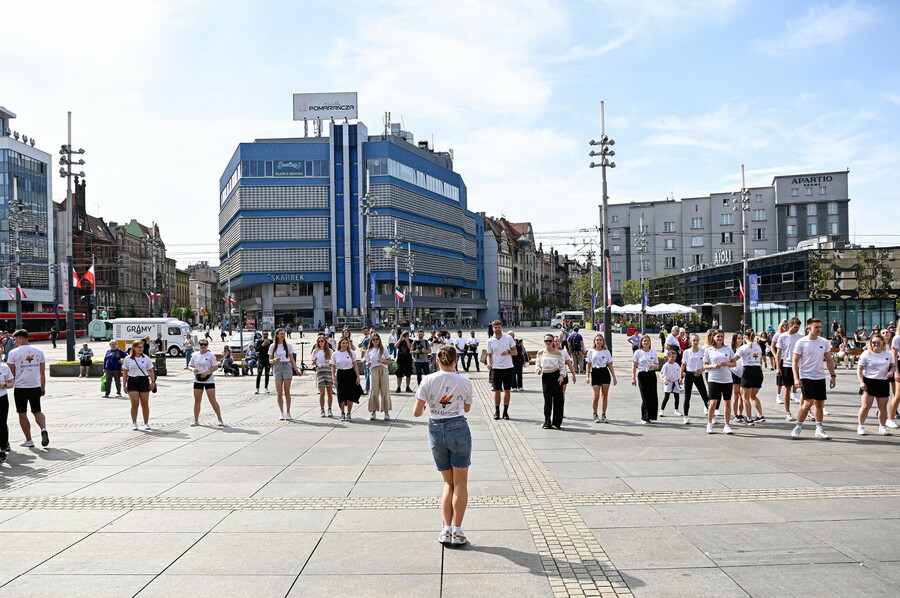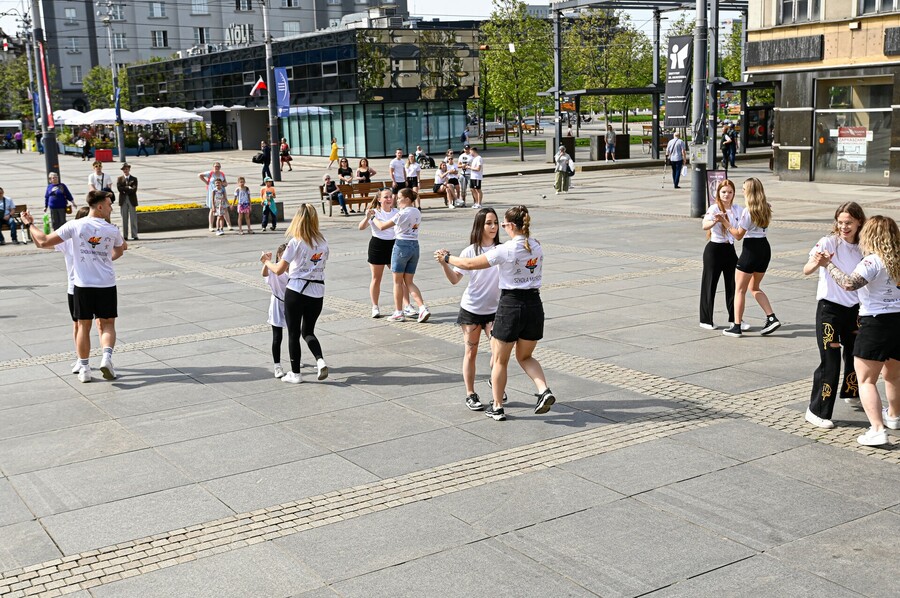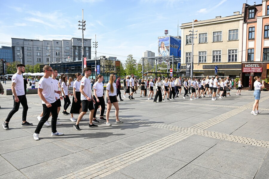Studenci AWF Katowice zatańczyli cha-chę przed Teatrem Śląskim