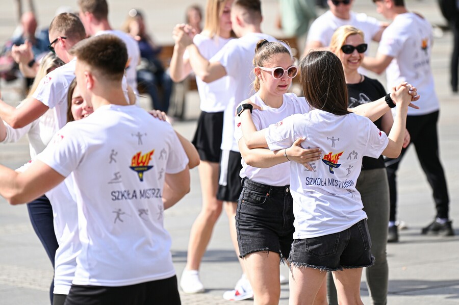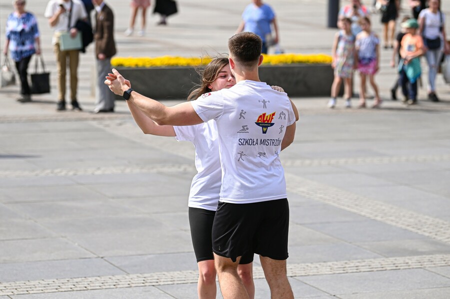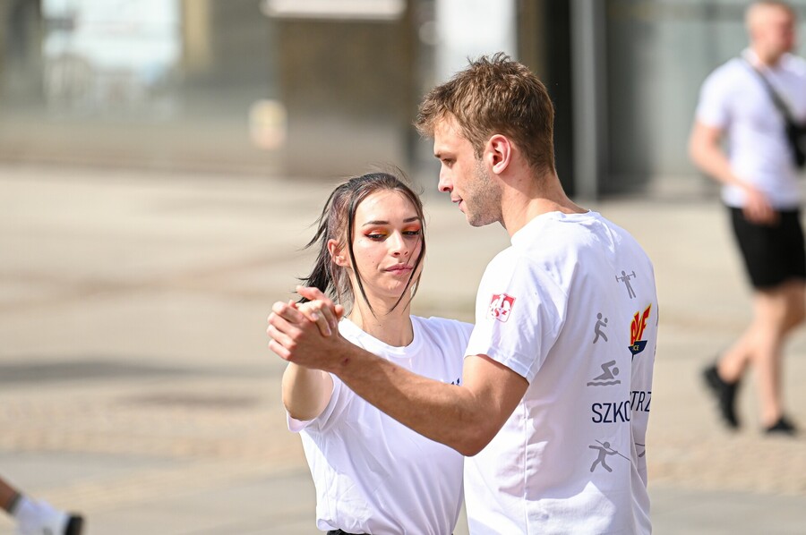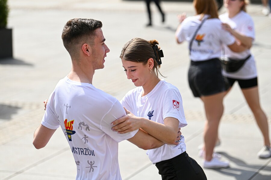 - Cha-cha to radosny i dynamiczny taniec, który można prezentować w jednym miejscu, nie wymaga dużego parkietu, a wciąż wygląda efektownie. Wydaje się lekki i charakteryzuje się płynnością ruchów. Na zajęciach studenci poznają historię, ewolucję i charakterystykę różnych styli tanecznych. Bawią się ruchem, sprawia im to ogromną przyjemność, dlatego chcą tym zarażać innych. – mówi Angelika Torbus opiekunka akcji z Katedry Sportów Indywidualnych AWF Katowice.