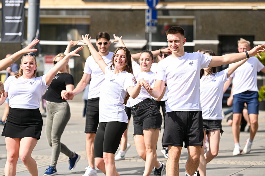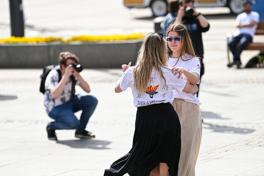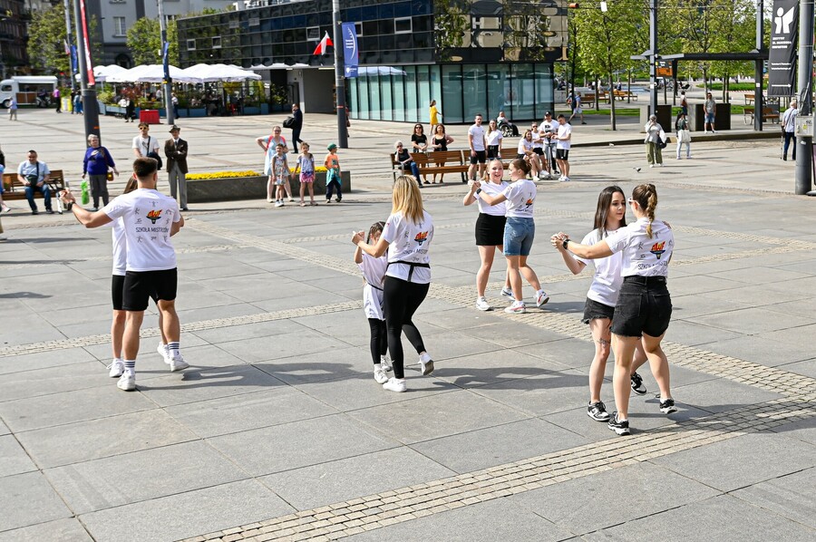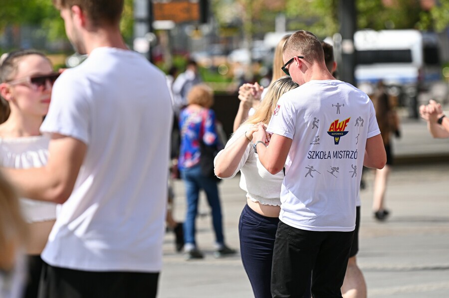 W poniedziałek o 15:00 przed Teatrem Śląskim ponad 30-osobowy zespół AWF-iaków zatańczył latynoamerykański klasyk – cha-chę. Oprócz pokazu studenci zaprosili do nauki podstawowych kroków i wspólnej zabawy przy muzyce.