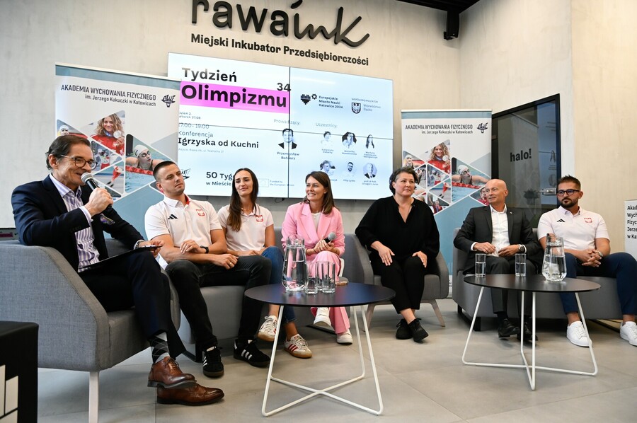 Późnym popołudniem w Strefie Innowacji Miasta Katowice Rawa.Ink odbyła się konferencja pt. Igrzyska od Kuchni. Spotkanie prowadził znany dziennikarz sportowy Przemysław Babiarz, a jego rozmówcami byli: Katarzyna Deberny (PKOI), Weronika Nowakowska (biathlonistka, olimpijka, psycholog sportu, komentatorka sportowa TVP), Filip Lysko — (fizjoterapeuta kadry narodowej pływaków na IO w Paryżu), Martyna Swatowska-Wenglarczyk - brązowa medalistka IO w Paryżu (szermierka drużynowo), Jan Wenglarczyk trener (szermierka). Przybyli mieli okazję poznać, „igrzyska od kuchni” z perspektywy sportowca, trenera, fizjoterapeuty, członkini PKOI, komentatora, a także kibica. Padło sporo pytań i ciekawych odpowiedzi.
