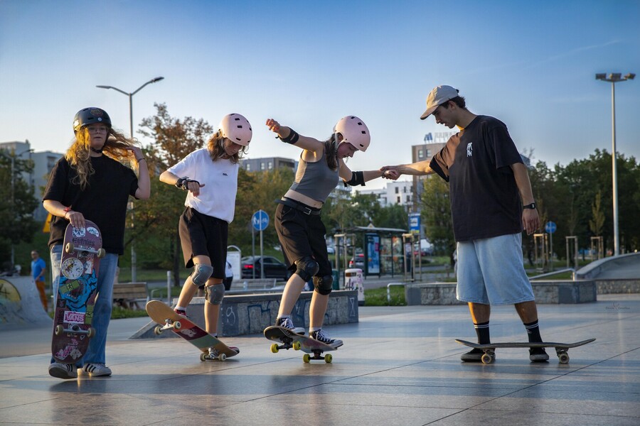 Przy pomniku Trudu Górniczego odbyły się warsztaty z jazdy na deskorolce, które poprowadzili Jakub Golański i Dawid Cebertowicz. Uczestnicy – grupa poczatkująca i średniozaawansowana trenowali równowagę, uczyli się podstawowych manewrów i tricków, a przede wszystkim dobrze się bawili. Deskorolka, jako sport, ma swoje korzenie w Kalifornii w latach 50. XX wieku, kiedy surferzy szukali alternatywy do jazdy na fali podczas dni bez fal. Z biegiem lat, deskorolka przekształciła się w dynamiczną i zróżnicowaną dyscyplinę sportową, z własną kulturą i społecznością. Popularność tego sportu wzrosła znacząco w latach 70. i 80., a z czasem zyskała uznanie na całym świecie. Takie warsztaty pomagają promować ten sport wśród lokalnej społeczności, a dodatkowo zwracają uwagę na aspekt bezpieczeństwa, czyli używanie kasków i ochraniaczy, budując świadomą odpowiedzialność wśród skejterów.
