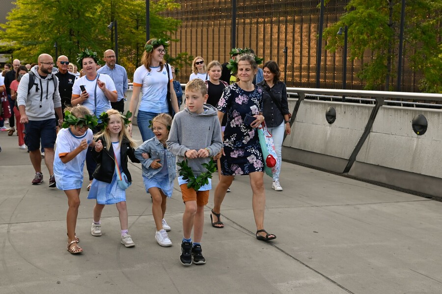 Po warsztatach, z pięknymi wieńcami na głowach uczestnicy udali się na ceremonię otwarcia Tygodnia Olimpizmu. Zgromadzeni, przy akompaniamencie bębniarzy przemaszerowali spod pomnika Sławika i Antalla do Amfiteatru NOSPR. Ceremonię zainaugurowały przemówienia prof. dr. hab. Grzegorza Jurasa, JM Rektora AWF Katowice, wiceprezydenta Katowic Waldemara Bojaruna oraz wykład o historii olimpizmu zaprezentowany przez prof. dr. hab. Zbigniewa Waśkiewicza.