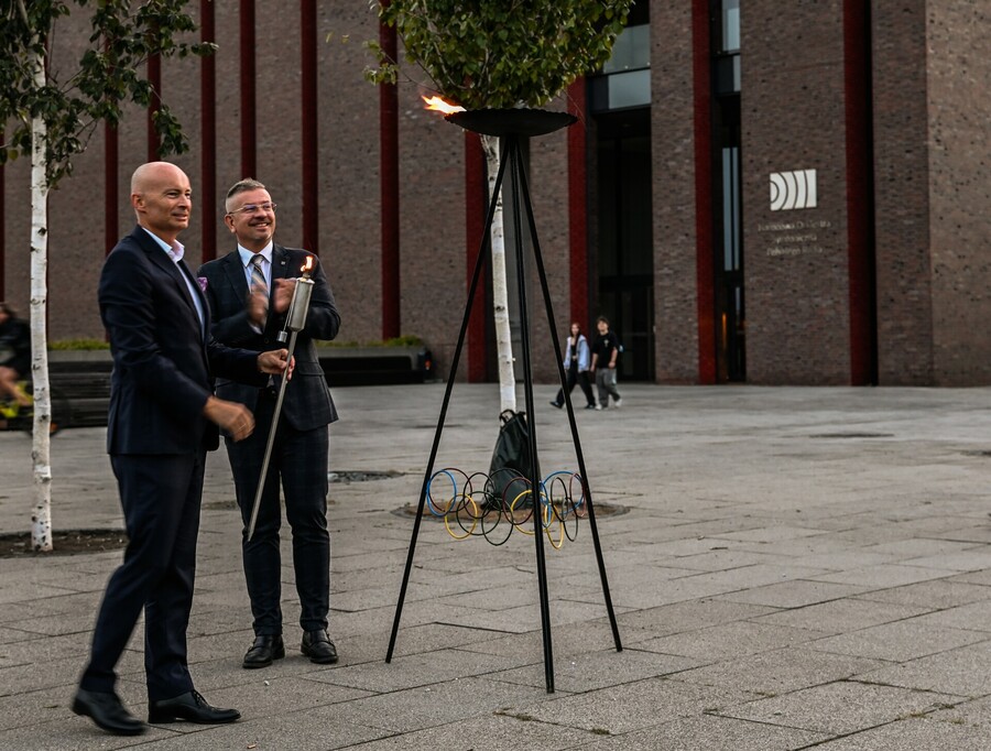Na zakończenie wszyscy goście wysłuchali rozmowy Weroniki Nowakowskiej z Aleksandrem Dzięciołowskim – dziennikarzem sportowym, którego znamy m.in. z relacjonowania występów lekkoatletów na wielu igrzyskach olimpijskich, także tych ostatnich. Było refleksyjnie i nostalgicznie, a zgromadzeni mieli okazję posłuchać o emocjach towarzyszących sportowcom, na największych imprezach czterolecia z perspektywy komentatora. Zwieńczeniem wieczoru było zapalenie znicza symbolizującego znicz olimpijski, którego dokonał JM Rektor AWF Katowice prof. dr hab. Grzegorz Juras.