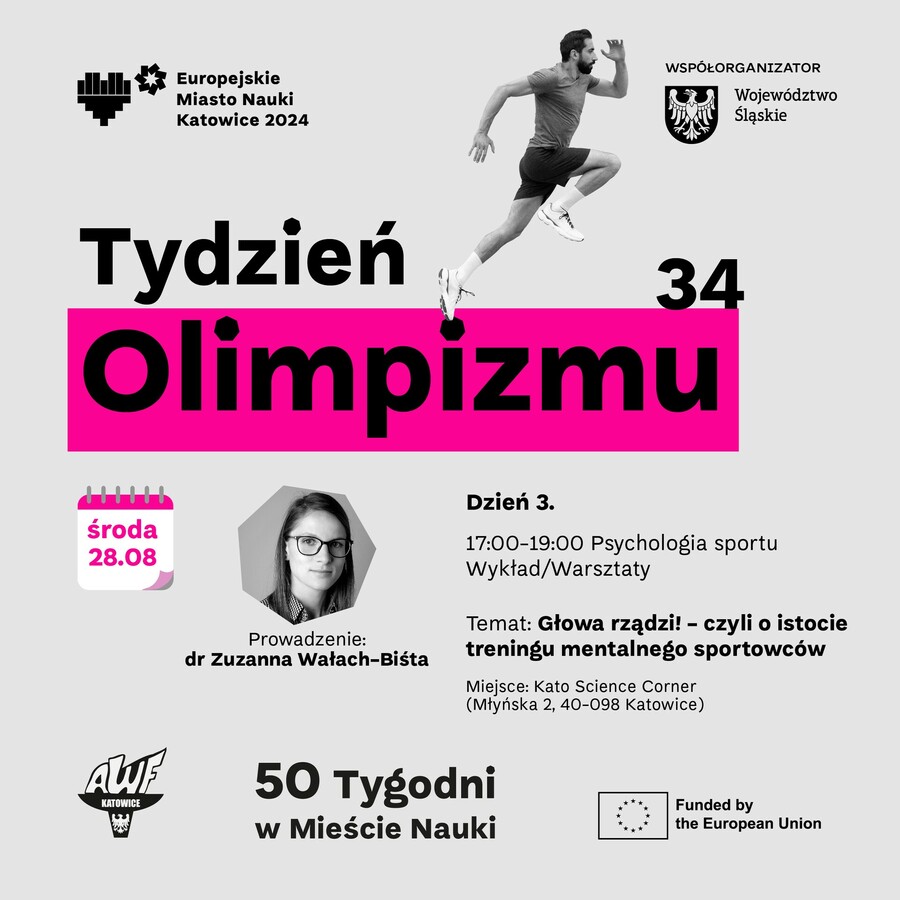 Zapisy: https://awf.katowice.pl/wydarzeniaawf/tydzien-olimpizmu/psychologia-sportu-wyklad-i-warsztaty