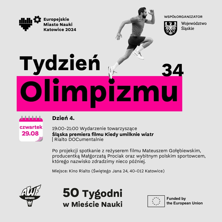 Zapisy: https://awf.katowice.pl/wydarzeniaawf/tydzien-olimpizmu/slaska-premiera-filmu-kiedy-umilknie-wiatr