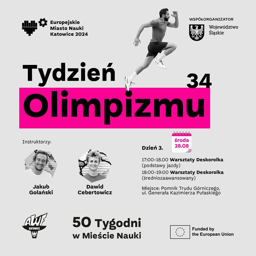 Zapisy: https://awf.katowice.pl/wydarzeniaawf/tydzien-olimpizmu/to-warsztat-deskorolka-dla-dzieci---podstawy