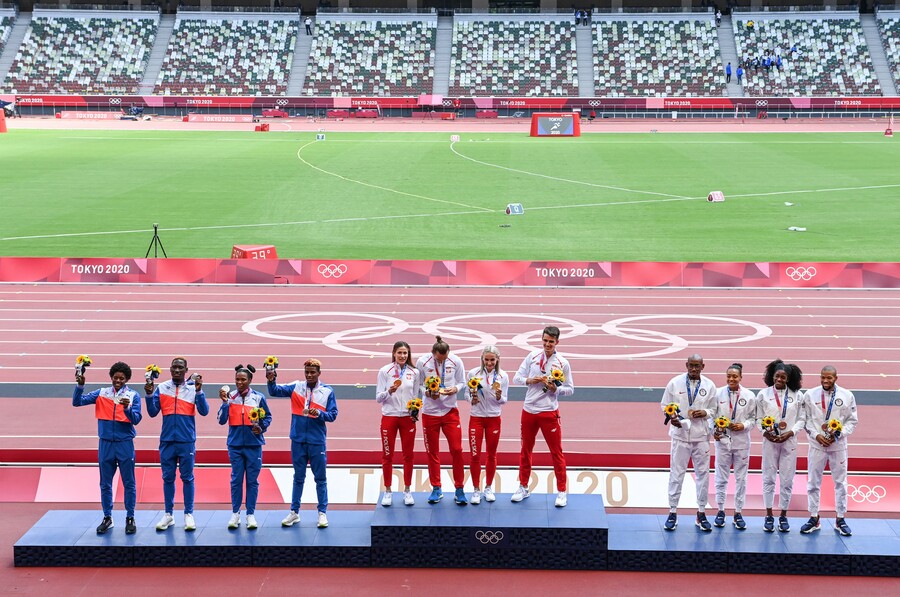 Nasi biegacze Justyna Święty-Ersetic oraz Karol Zalewski przywożą ze sobą złoto zdobyte w sztafecie mieszanej 4x400 metrów zdobyte z fenomenalnym wynikiem. Dodatkowo Justyna zdobyła również medal srebrny w sztafecie 4x400 metrów kobiet. Sztafeta mężczyzn, z Karolem w składzie, na tym dystansie zajęła wysokie piąte miejsce – wcześniej pewnie awansując do biegu finałowego.