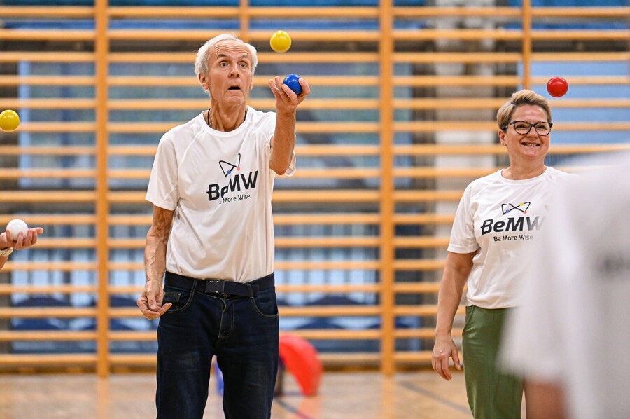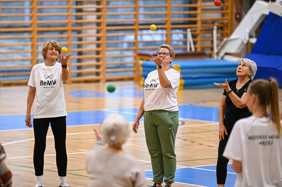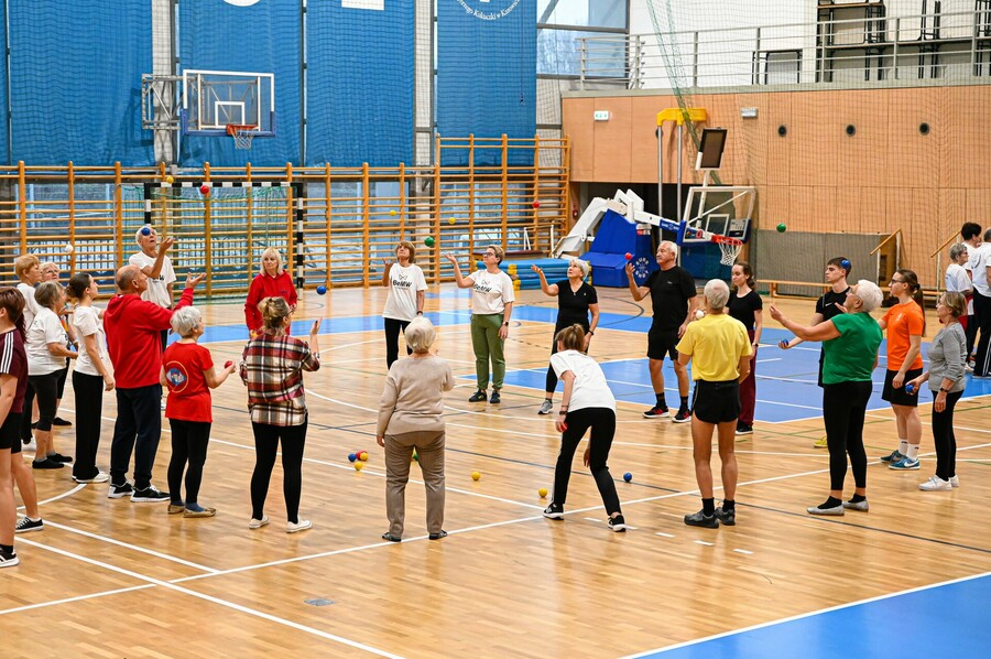 Zwieńczeniem wydarzenia były warsztaty żonglowania, gdzie seniorzy-liderzy z 12 tygodniowego programu treningowego ujętego w projekcie prowadzili zajęcia dla wszystkich obecnych.